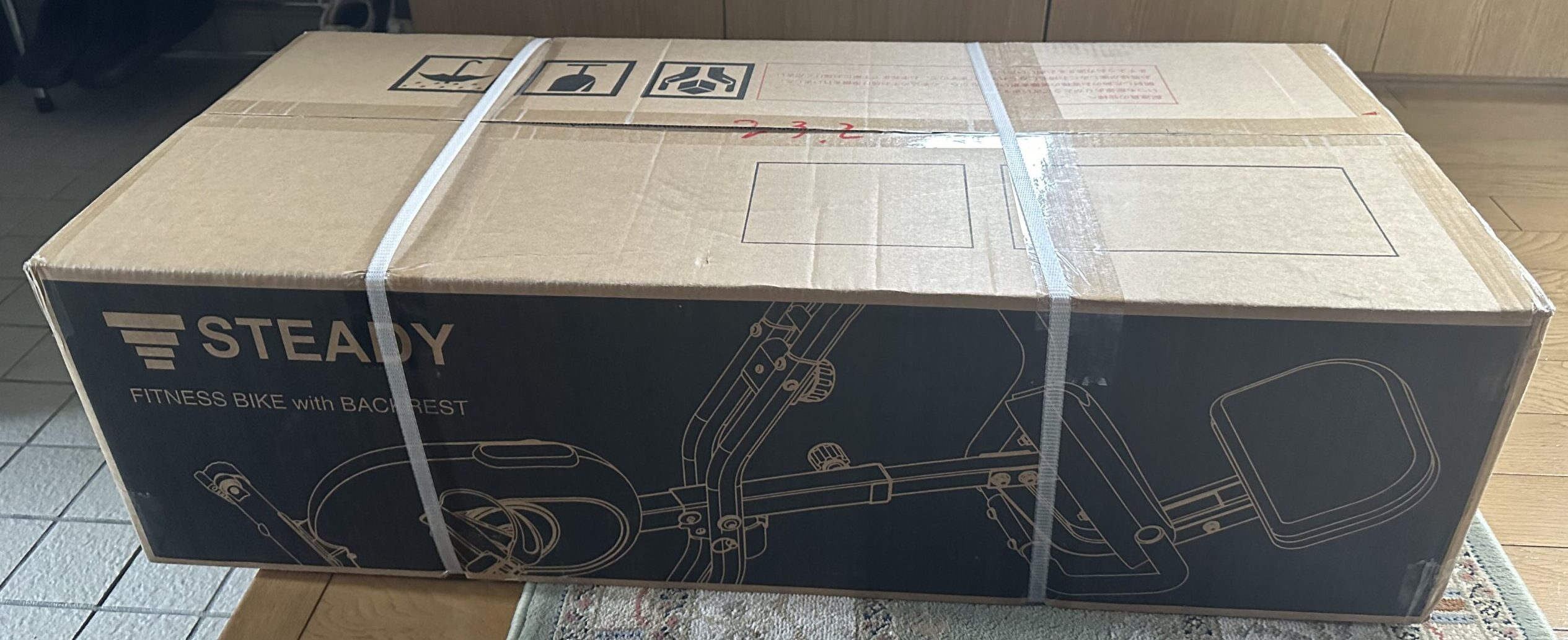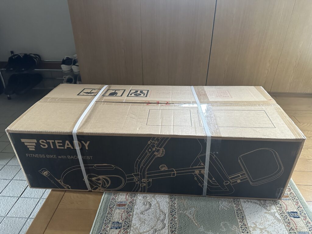 本日Amazonから商品が到着しました。届いたのは「STEADY フィットネスバイクの背もたれ付き」で値段は約2万円ほど。